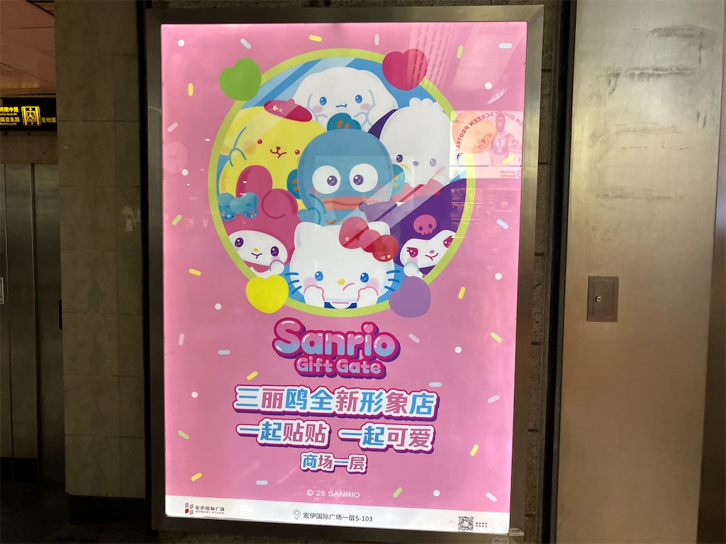 サンリオのショップがあるんだ! 「可愛」は国境を超える! 小学生のときからサンリオに夢中で60代になっても文具をコレクションしています。中央に陣取ったハンギョドンに励まされる日が来るなんて想像もしていませんでした。